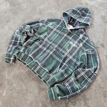 Kodo Custom Streetwear Men's Woven Plaid Polyester Hoodie Cut and Sew Embroidered Kids Hoodies with Zipper