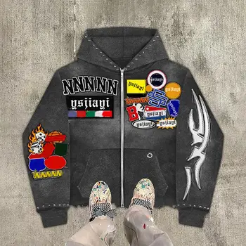 2026 New Style Kodo Custom Streetwear Printing Rivet Man Hoodie Embroidered Thermal Washed Hoodie for Man